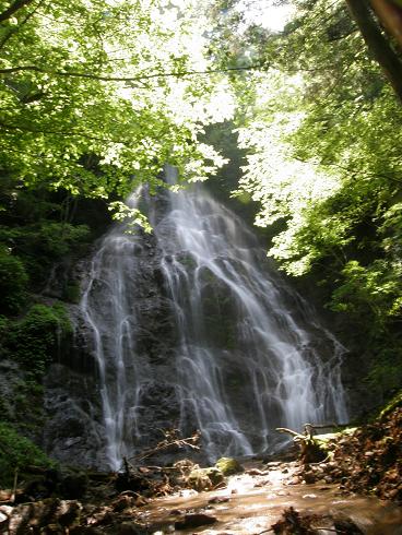 藤野町芸術の家の奥にあります。 中央道、相模湖インターから 国道20号を山梨県方面へ行き、 藤野町役場近くの「日連入口」から左折して 県道76号へ進みます。 2kmほどで芸術の家が右側に見つかります。 無料駐車場に車を停めて奥に歩きます。 建物の奥の方に沢があるので、沢に入り 水の流れに逆らって歩きます。 途中、左に別の沢があるのでそちらに進むと 見つかります。 滝までは歩いて15分くらいです。 |