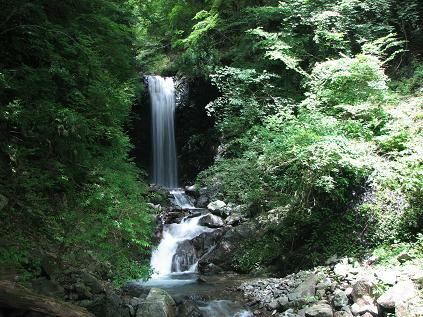 キュウハ沢のハイライト、F1です。うっそうと茂る緑に包まれて 静かに流れ ています。とても気持ちよい場所ですが、ヒルが多くて長居出来ません(^^; |