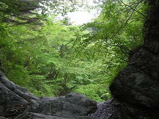 寄沢本流にあります。まず、滝郷滝を過ぎて 雨山峠という標示にしたがって、登山道を歩きま す。2kmほど歩いて開けた河原に出てたあたりで 左右に沢が別れます。少し戻るようにして 左の沢を進むと、すぐにF1のくの字の滝がありま す。連続するF1〜F3を超えると見つかります。 登山道は40分〜50分。 沢の遡行は20分〜30分くらいでしょうか。 危ないので気をつけて行きましょう(^^) |