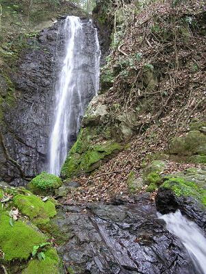 目立たない、小さな無名沢を登ると見つけられる 滝です。 全部で4〜5段に別れていて 一度に全容を眺めることは出来ません。 左の写真は一番上の段のもので 約10mほどの滝です。中段にある15m程の 流れも見事です。 それぞれの段で、見どころがあり なかなか楽しめる滝ですね(^^) |