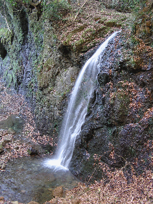 落ちた水は滝つぼを作ることことなく 静かに流れていきます。 日中も日が当たらず、名前の通り 薄暗く寒そうな雰囲気です。 03年に放送されたテレビドラマ、 「ハコイリムスメ!」の撮影で使われました。 |