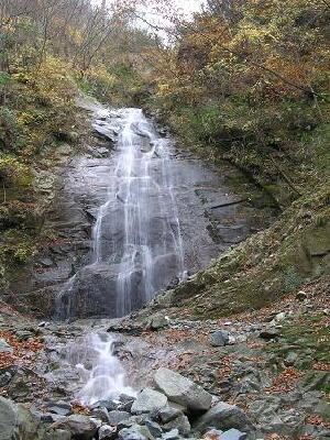 東沢の本棚です。 25mの落差がありますが 水量もすくなく、流れも滑らかなので 優しく優雅な感じです。 野を超え山を越え、合計13個の堰堤を越えて たどりつきます(^^; |