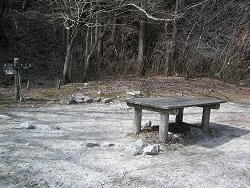 駐車後、つり橋を渡り、案内板で畦ヶ丸と